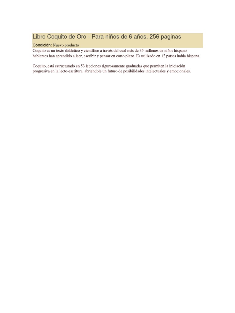 Libro coquito de oro para imprimir. Check spelling or type a new query. Maybe you would like to learn more about one of these? We did not find results for: